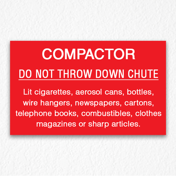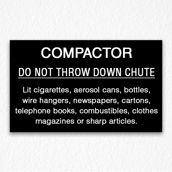 Tags: Building Management Signs, Compactor Chute Sign, HPD Building Signs