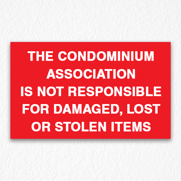 Condominium Not Responsible Sign available in custom color and sizes.
