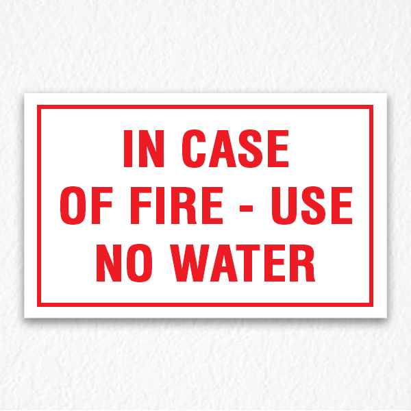 In Case Of Fire Use No Water Sign available in custom size and color.